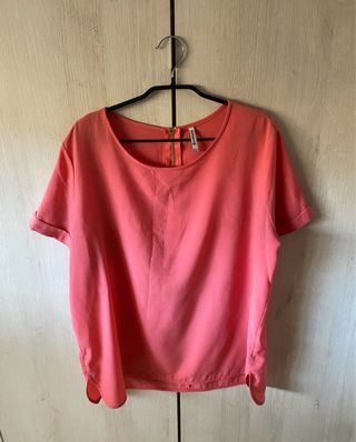 Blusa de Stradivarius con manga corta. - Diseño con cremallera en la espalda. - Mangas dobladas. - Bajo con aberturas laterales.