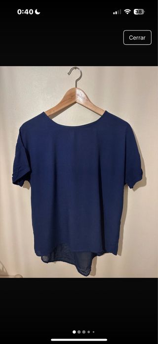 Blusa de color azul con un diseño casual y cómodo. - Por la parte de atrás se puede ver deterioro o un poco rasgado. - Cuello en V con botones. - Dos bolsillos en la parte delantera. - Mangas cortas.