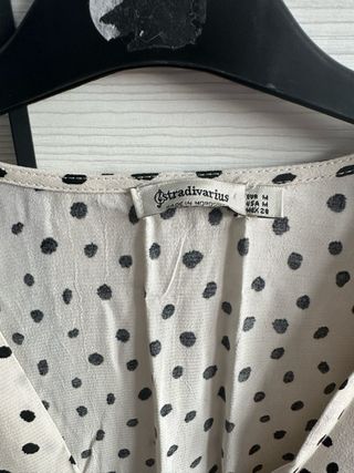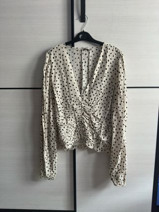Blusa de Stradivarius con un diseño de lunares. - Tejido ligero y transparente. - Escote en pico. - Cierre de lazada en la cintura. - Mangas abullonadas.