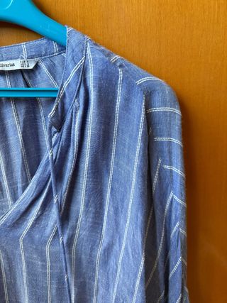 Blusa de Stradivarius con un diseño de rayas verticales en azul y blanco. Es una prenda ligera y cómoda. - Cuello en V. - Manga larga. - Corte holgado.