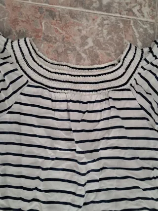 Blusa de rayas en color blanco y azul marino. Manga 3/4. Talla XL. Medida en la última foto. Marca: Stradivarius Estado: poco uso. Buenas condiciones. Precio: 7€ #camiseta