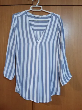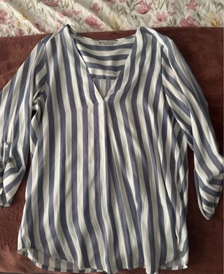 Blusa Stradivarius Rayas Azul y Blanco Talla M