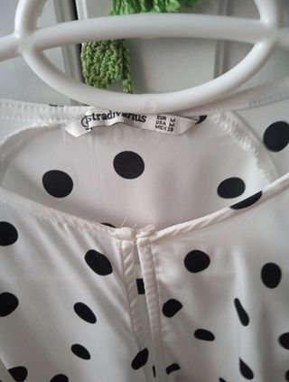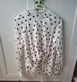 Blusa de Stradivarius con un diseño de lunares clásico. - Diseño de lunares negros sobre fondo blanco. - Manga larga. - Cuello camisero.