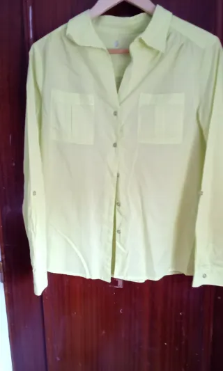 Camisa blusa con un diseño único y llamativo. Sin usar solo 3€ imposible rebajar más. - Estampado tipo mármol en tonos beige y verde. - Cuello camisero. - Cierre de botones.