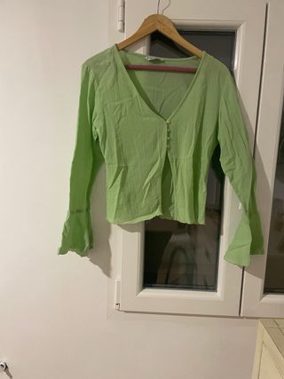 Blusa de manga larga en color verde. Talla S. Está como nuevo