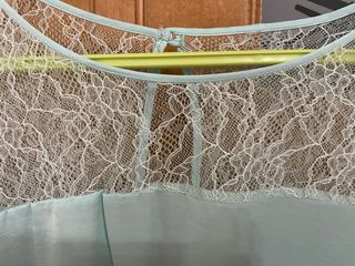 Elegante blusa con detalles de encaje de Stradivarius - Color verde militar. - Adorno de encaje negro en el escote. - Tirantes finos. En perfecto estado. Muy poco usada.