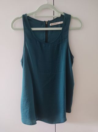 Blusa marca Stradivarius, talla L, sin mangas, color verde