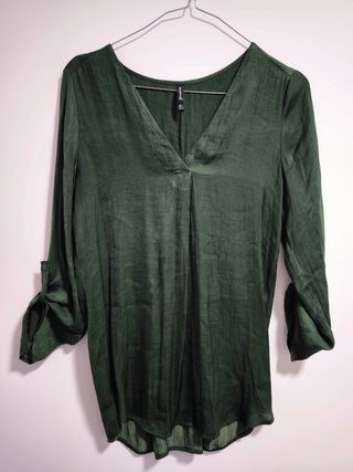 vendo blusa verde botella, mangas abullonadas y transparenta un poco. Está nueva sin usar . No se admiten cambios.