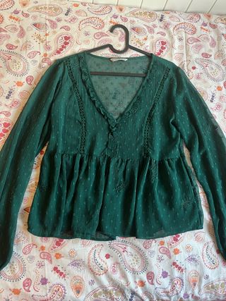 Blusa Stradivarius encaje verde talla S