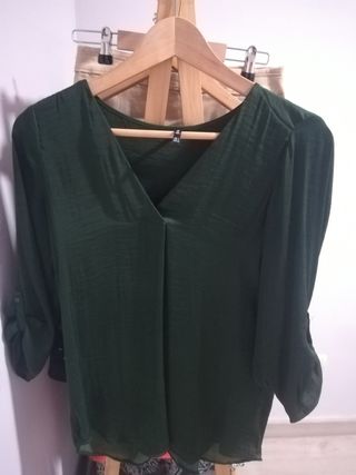 Preciosa blusa de la marca Stradivarius, en color verde y talla S. Es una prenda delicada y elegante, ideal para cualquier ocasión. - Corte favorecedor. - Tejido suave y fluido. - Perfecta para primavera/verano.