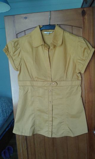 Blusa manga corta color mostaza con manga corta con botón. Talla M pero es más bien S y no holgada.Bonito color y diseño.
