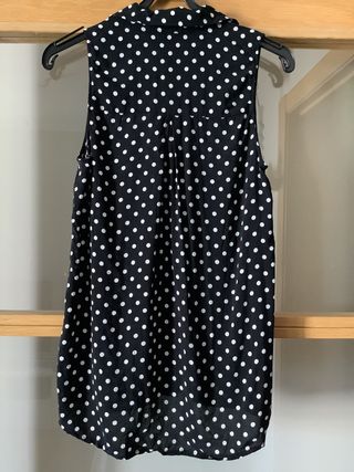 Blusa sin mangas de motas, dos bolsillos en la parte delantera, cierre con botones, más larga por la parte trasera, en perfecto estado, talla S, es de Stradivarius