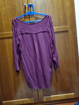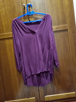 Blusa con escote a pico y más larga por la espalda de stradivarius. Color vino. Talla M