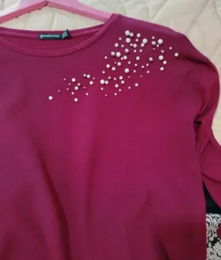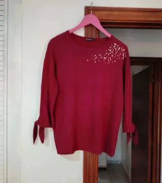 Blusa Stradivarius burdeos con perlas Talla S