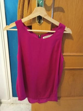 Blusa de tirantes, ancha y satinada. Color fucsia, elegante y ligera. Como nueva.