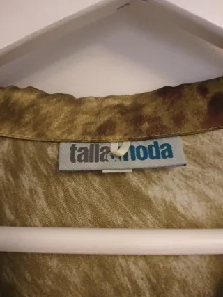 Blusa/camisa de mujer en color beige. Talla 50. Medidas: de hombro a hombro 44 centímetros; de sisa a sisa 52 centímetros; largo 67 centímetros.