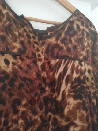 Blusa con estampado de leopardo. - Diseño vintage de manga larga. - Cuello redondo con abertura. - Tejido ligero y fluido.