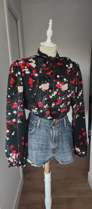 Blusa Vintage Dressing de mujer color negro y rojo talla L de uso en perfecto estado.
