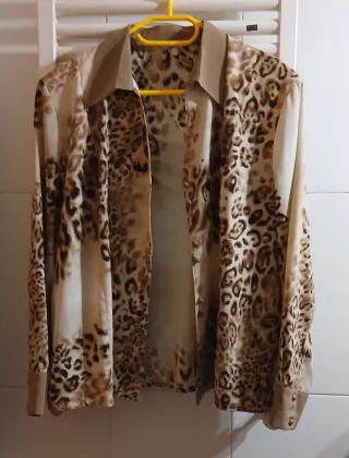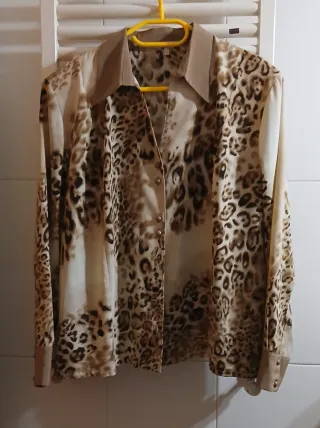 Elegante blusa con estampado de leopardo. Vintage 100% poliéster - Diseño de manga larga. - Cuello camisero. - Cierre de botones. No se admiten cambios ni devoluciones