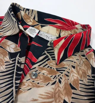 Camisa vintage con un llamativo estampado floral. - Diseño de flores rojas y hojas verdes. - Cuello camisero. - Cierre de botones. -.un poco transparente