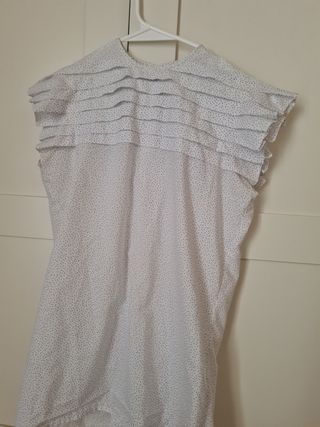 Es una camiseta sin mangas súper bonita 🥰. Es ideal para usar en verano o primavera, es súper cómoda y combinable ☺️. Tiene una pequeña mancha que casi no se nota (foto).