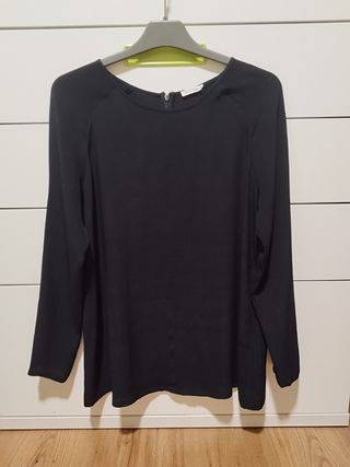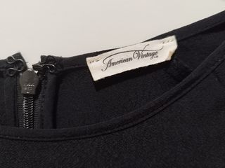 Blusa American Vintage talla S. Una puesta, como nueva. Color negro. Cuello redondo. Manga larga corte ranglan. Cierre con cremallera en la espalda. Tejido fluido, con mucha caída. Composición: 100% viscosa. Medidas: - sisa a sisa (pecho): 47 cm - largo: 69 cm Ajusto precio si te llevas varios productos, consulta mi perfil (Abbacino, American Vintage, Art, Bimba y Lola, Chantelle, Clarks, Comptoir des Cotonniers, Derhy, Desigual, Esprit, Gemma, Massimo Dutti, Mi&Co, Munich, Nice Things, Nümph, Pepe Jeans, Pikolinos, Quechua, Roberto Verino, Skunkfunk, Street One, Surkana, Vila, Walk&Fly, Yerse, Zara Home, Zergatik).
