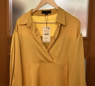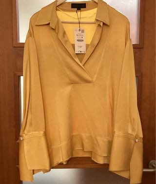 Elegante blusa de vestir de Zara. - Diseño con cuello camisero. - Tejido satinado. - Corte holgado.