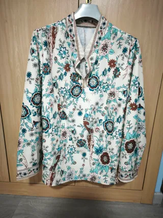 Blusa con un estampado floral vibrante y colorido. Su diseño la hace ideal para añadir un toque de estilo a cualquier atuendo. - Diseño de manga larga. - Cuello camisero clásico. - Cierre frontal.