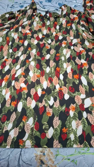 Preciosa blusa de la marca Venca, talla 4XL 50 52 Es una prenda colorida y vistosa, ideal para cualquier ocasión. - Diseño estampado con tonos granates y naranjas. - Manga larga. - Cierre de botones. Tela fina muy larga. No la he estrenado