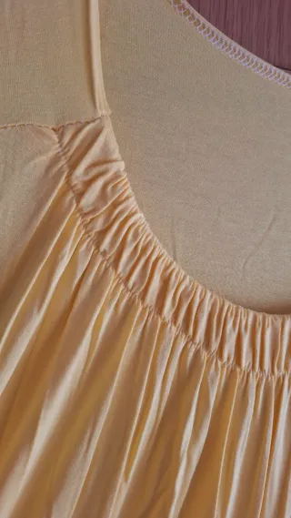 - Blusa coral de gasa con detalle en el escote - Talla: L / XL - Material: 100% poliester - Comprado en El Corte Inglés - Medidas: - Ancho de sisa: 46 cm - Largo de prenda: 64 cm