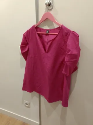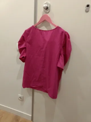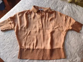 Blusa elegante de Zara con un diseño moderno. - Mangas largas. - Cuello camisero. - Detalle fruncido en el pecho. - Cierre de botones.