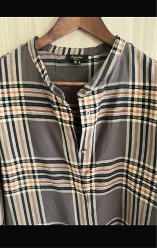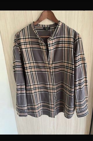 Blusa de manga larga con estampado de cuadros. - Cuello mao. - Cierre de botones. - Diseño moderno. Talla grande, aunque es M talla como L/XL