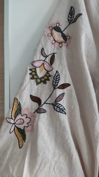 Blusa con un diseño encantador y detalles florales. - Mangas con bordado de flores. - Cuello en V. - Bajo elástico.