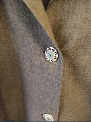 Blusa de punto con un diseño moderno asimétrico, colores verde y negro, botones marrones. Medidas: Ancho 55cm Largo desde hombro 95cm Mangas 65cm Nuevo a estrenar
