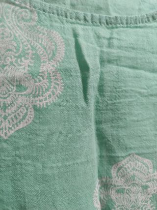 Preciosa blusa de color verde con un bonito estampado blanco. Es de talla XL. - La tela es ligera y fresca. - Tiene un corte amplio y cómodo. - Ideal para primavera/verano. El color es como el de la segunda foto