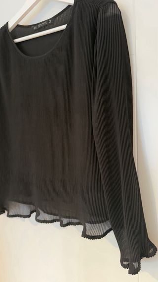 Blusa plisada Zara negra manga larga