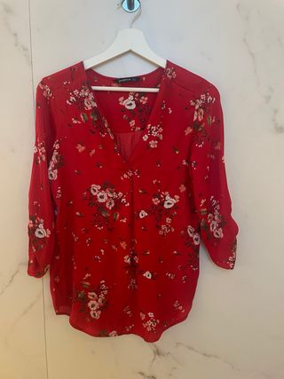 Blusa Zara Estampada Flores Roja XS 8€ NO NEGOCIAB
