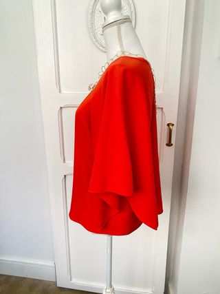 Preciosa blusa de Zara en color rojo. Es de manga francesa y cuello alto. Está en perfecto estado. - Talla S (equivalente a 36 u 8) - Cuello alto - Manga francesa