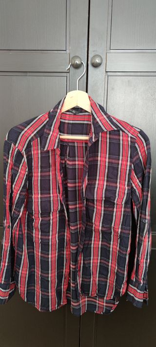 Realmente parece una M. Con bolsillos y botones en las mangas. Usada una vez. No es mi estilo aunque me gusta. Rojo, azul, blanco y amarillo. Podemos quedar en Zaragoza.