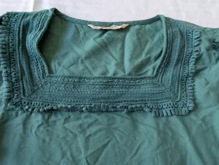 Blusa de Zara con un bonito diseño de bordados. - Cuello cuadrado. - Detalle de bordados en el cuello, bajo y mangas. - precioso color verde. Medidas en cm: 48 hombro 47 sisa 58 largo