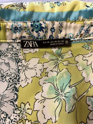 Preciosa blusa de Zara en tonos azules y verdes. Es una prenda elegante y cómoda, ideal para cualquier ocasión. Talla S y M - Diseño satinado. - Manga larga. - Cuello clásico.