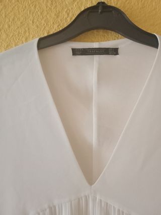 Blusa de mujer Zara sin estrenar. Talla S. 100% poliester. Medidas: Hombros: 36 cm, de axila a axila 50 cm, largo 60 cm. Se entrega en Puerta del Sur Alcorcon. No hago intercambios. Envios por wallapop. Precio no negociable
