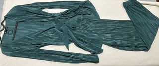 Conjunto de blusa anudada larga y pantalón color turquesa oscuro/aguamarina de Zara sin estrenar con efecto plisado