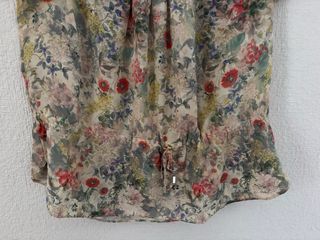 Camisa blanca con un bonito bordado de flores y mariposas. - Diseño con volantes en el bajo. - Mangas largas abullonadas. - Cierre de boton en la espalda. talla S.