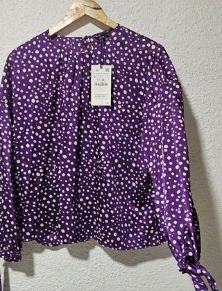 Preciosa blusa de Zara en color fucsia, talla M. Está completamente nueva, sin usar. - Diseño favorecedor con detalle fruncido. - Tejido suave y agradable al tacto. - Perfecta para cualquier ocasión.