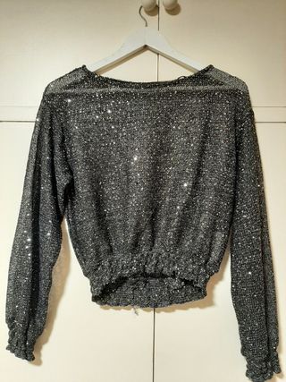blusa semitransparente, con brillos