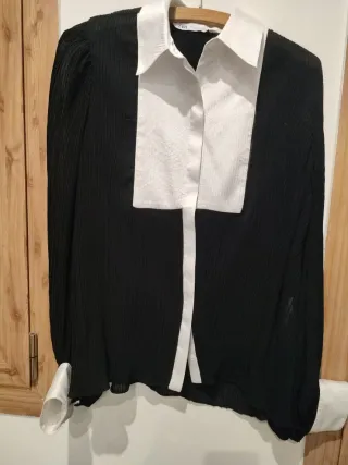 Blusa elegante de Zara con un diseño moderno. - Mangas largas. - Cuello camisero. - Detalle fruncido en el pecho. - Cierre de botones.