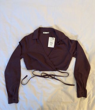 Blusa crop Zara cruzada púrpura/marrón