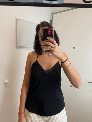Bonita blusa estilo boho de Zara con detalles de encaje. - Diseño ligero y vaporoso. - Tirantes finos. - Adorno de encaje en el escote y los hombros.