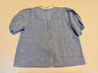 Elegante blusa de Zara con un diseño de pechera contrastante y con pespuntes y con un cuello precioso recto - Mangas largas abullonadas estilo mariposa - Cuello camisero. Puesta 1 vez - Cierre de botones ocultos - Puños satinados.